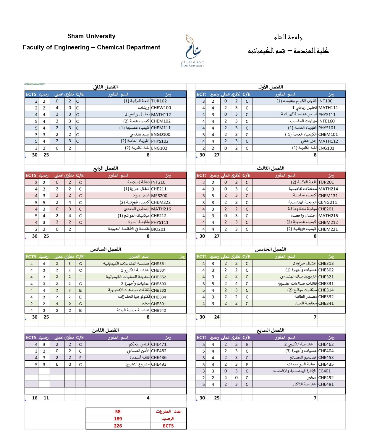 يتبنى قسم الهندسة الكيميائية بجامعة الشام العالمية رؤية خاصة للوصول إلى مستوى أكاديمي متميز.